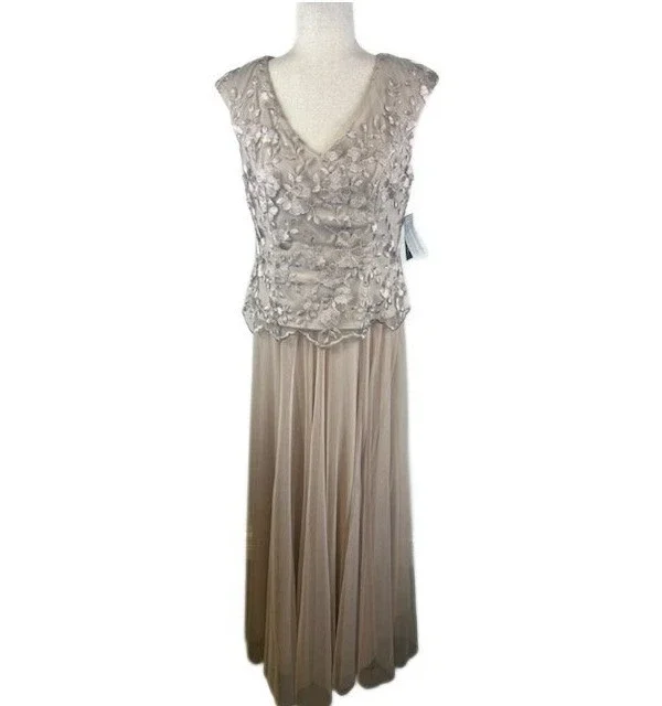 Alex Evenings Taupe Floral Lace Gown Dress Mother of Bride Wedding Guest Size 8