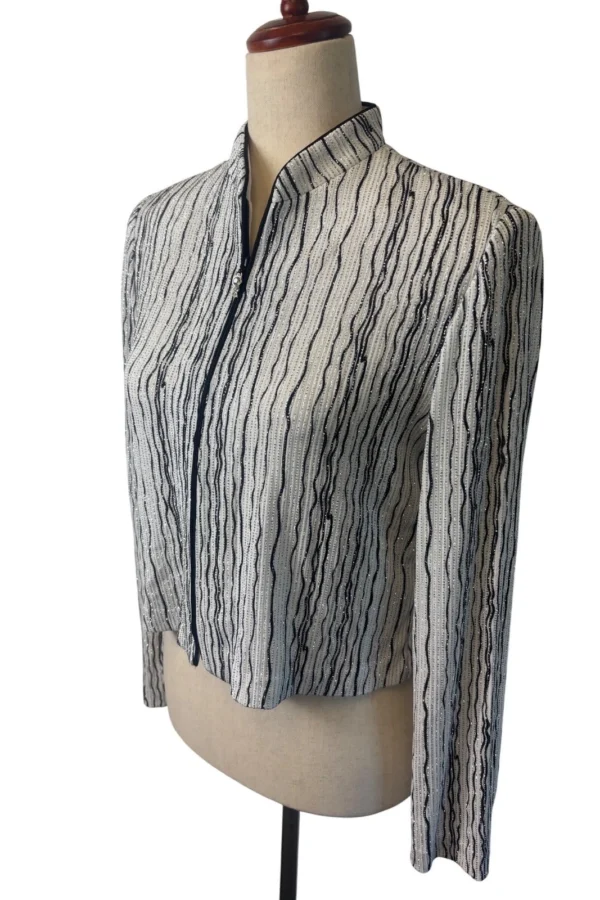 Alex Evenings White Black Metallic Silver Sparkle Crystal Jacket Size 8
