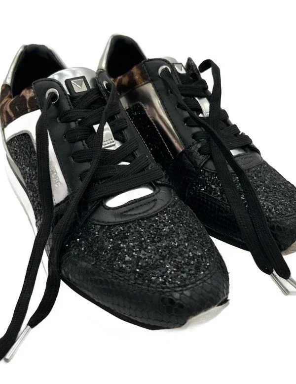 Michael Kors Women's Size 8.5 Black Glitter Leopard Wedge Sneakers Tennis Shoes