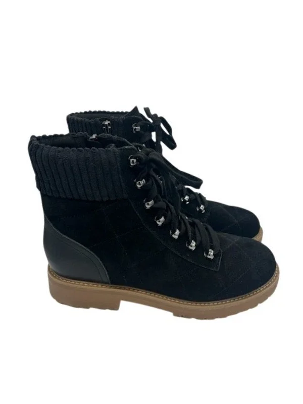 New Easy Spirit Martha Stewart Selakely Quilted Lace Up Ankle Boots Black 8.5M