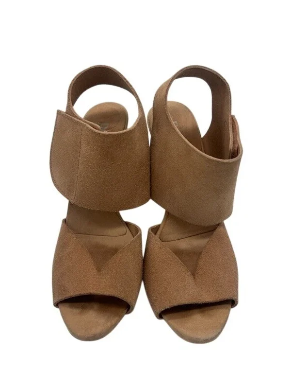 Pedro Garcia Suede Heels Peep Toe Slingback Stiletto Tan Neutral Size 39