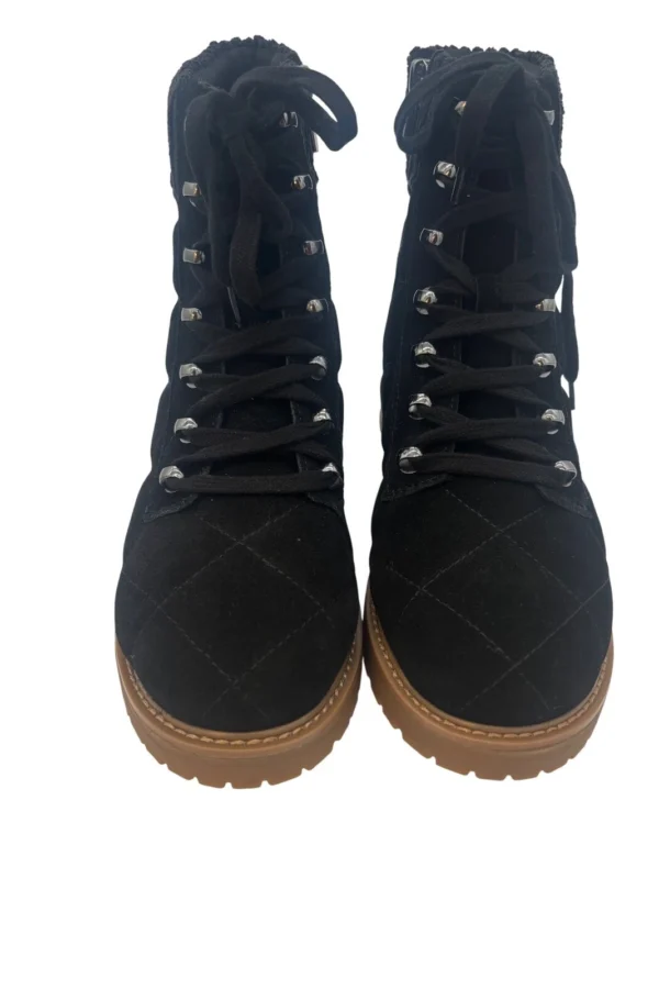 Easy Spirit Ankle Boots Quilted Lace Up Lug Sole Black Size 8.5M