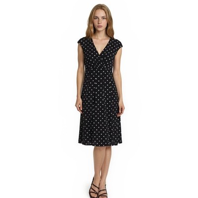 Lauren Ralph Lauren Dress Women's 8P Petite Black White Polka Dot Fit Flare