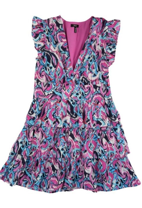 AQUA Mini Dress Womens Size XL Pink Blue Abstract Tiered Smocked