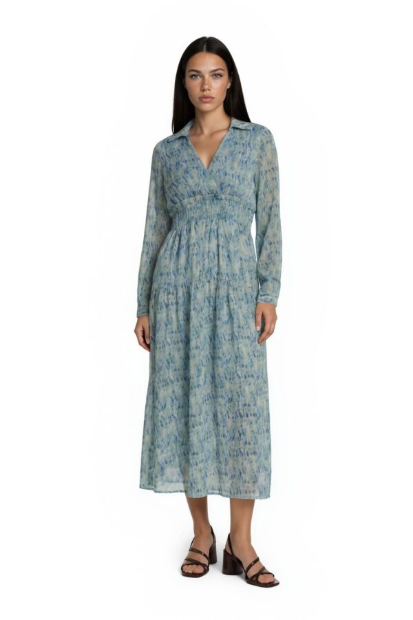 Taylor Midi Dress Women's Size 8 Blue Green Abstract Smocked Tiered