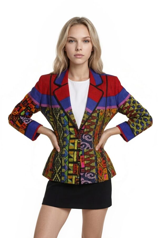 Berek Linen Jacket Womens Size Medium Multicolor Geometric Zip Up Vintage