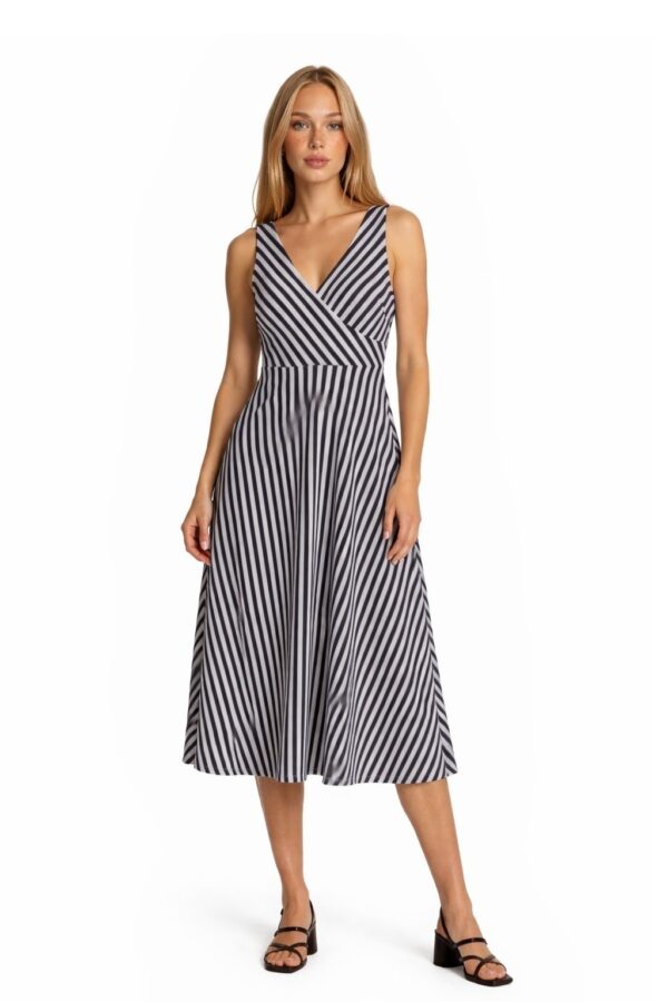 Boden Striped Midi Dress Womens Size 10P Navy Blue White Wrap V Neck Fit Flare