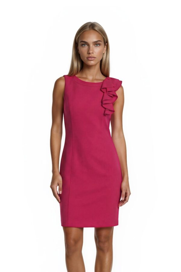 Calvin Klein Sheath Dress Women's Size 14 Pink Ruffle Shoulder Sleeveless