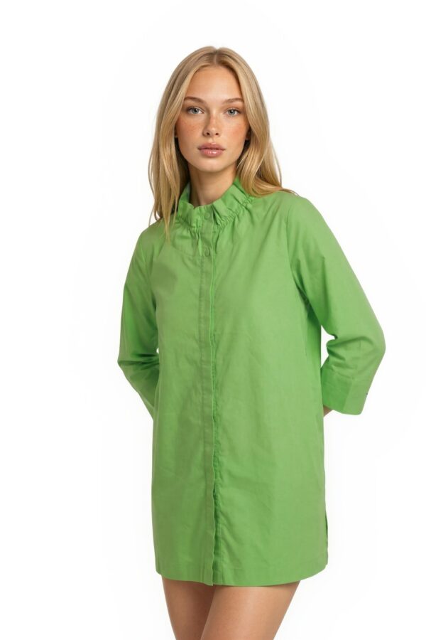 Diane Bailey Tunic Top Womens Size Small Lime Green Ruffle Neck Cotton Blend