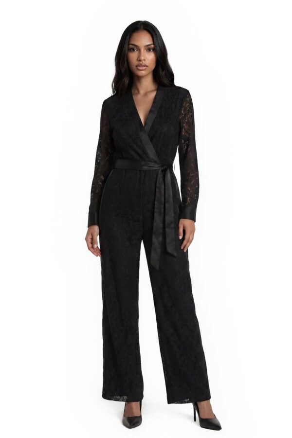 Diane von Furstenberg Jumpsuit Women's Size 8 Black Tie Evening Lace Satin