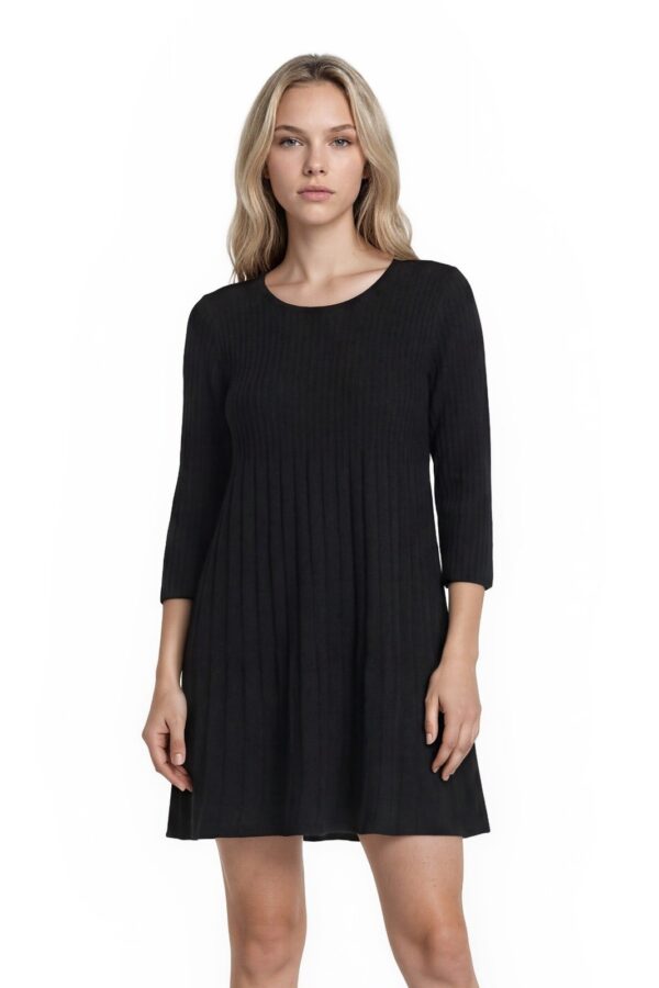 Eileen Fisher Dress Women's Size Medium Black Ribbed 100% Wool A Line 3/4 Sleeve