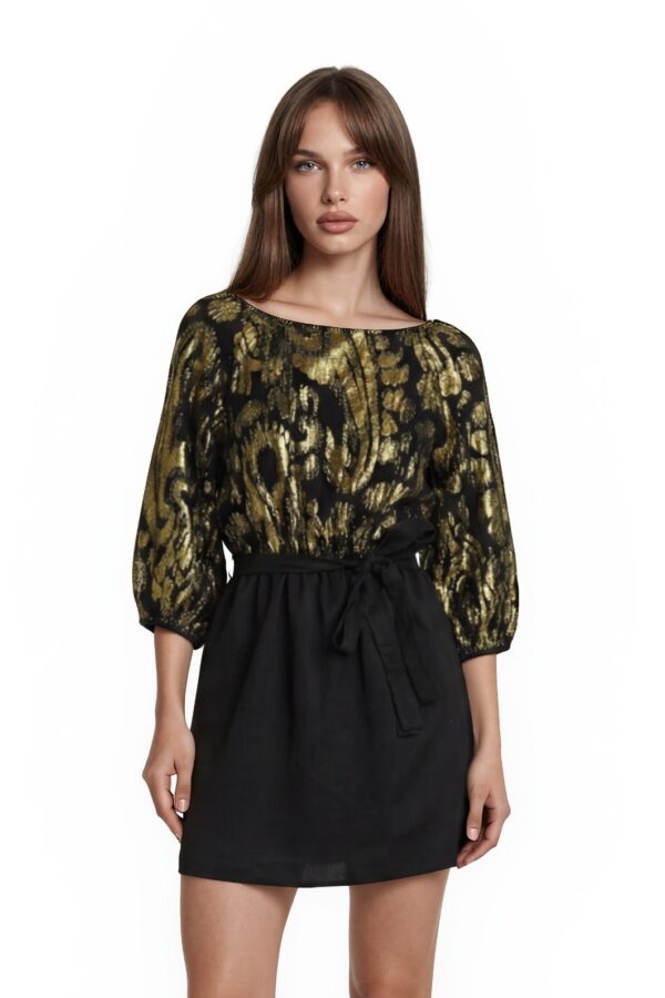 Gianni Bini Dress Women's Size Medium Black Gold Metallic Brocade Cocktail