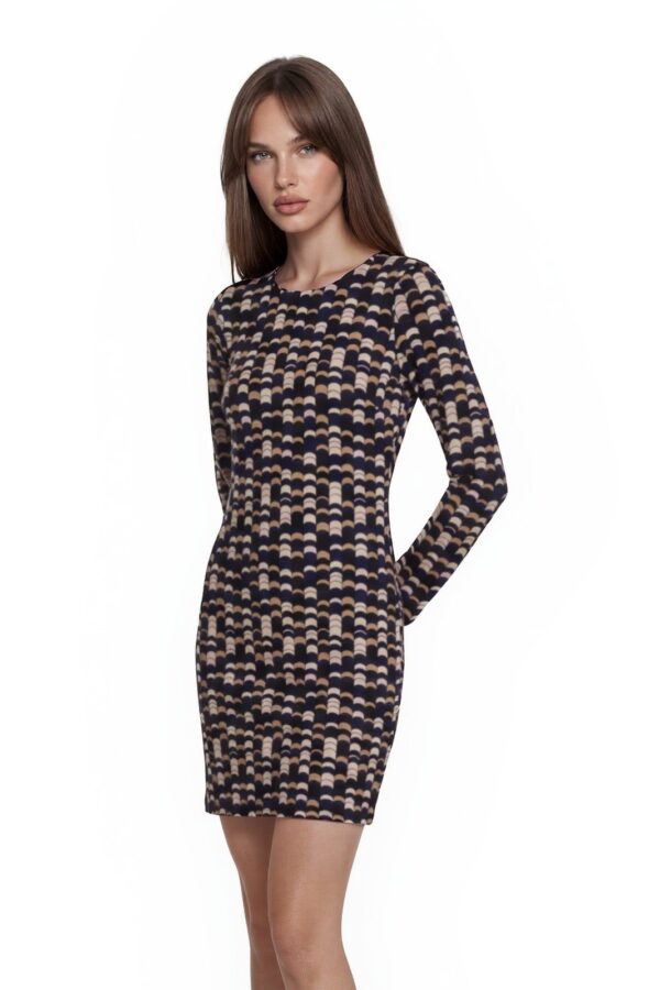 Julie Brown NYC Shift Dress Women's Size Large Navy Blue Geometric Long Sleeves
