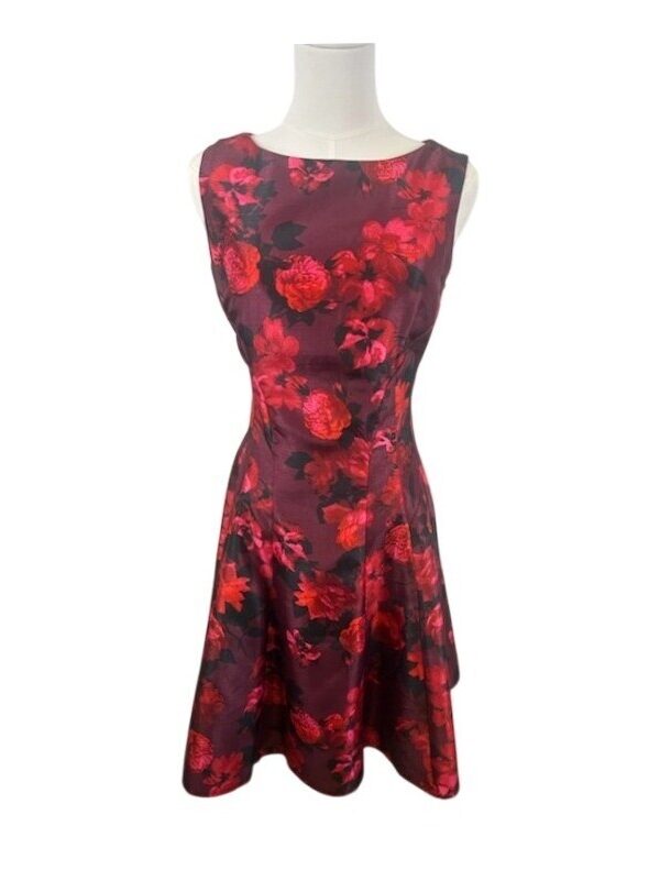 Julian Taylor Floral Fit & Flare Dress Party Cocktail Burgundy Red Size 14
