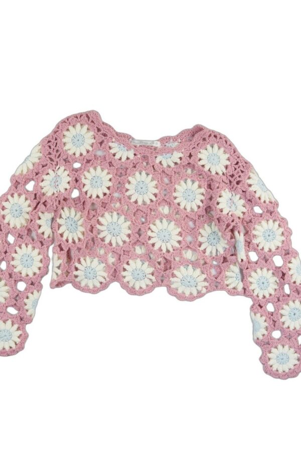 Altar d State Sweater Women's Size Medium Large Pink Floral Cropped Crochet Knit