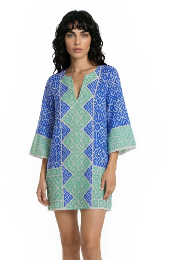 Alice and Trixie Tunic Dress Womens Size Large Blue Green Silk Geometric