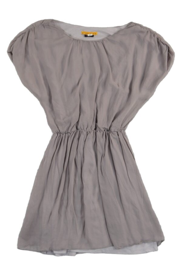 Alice + Olivia Mini Dress Women's Size XS Taupe Grey Silk Blend Draped Cinched